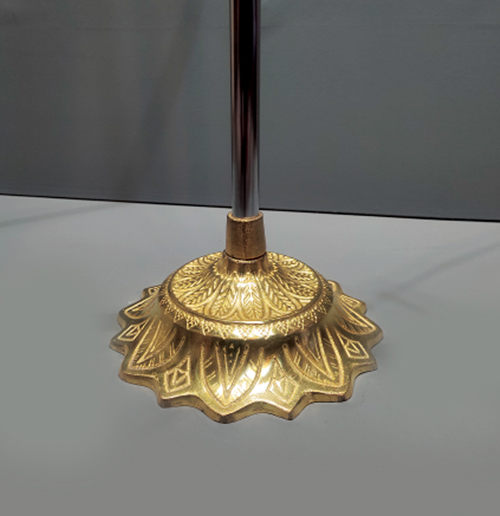 پایه تشریفات خورشیدی با طراحی خاص و جذاب خود، بهویژه با نماد شعاعهای خورشید در قسمت پایینی، انتخابی شکیل و فاخر برای استفاده در مکانهای رسمی و مجلل است.